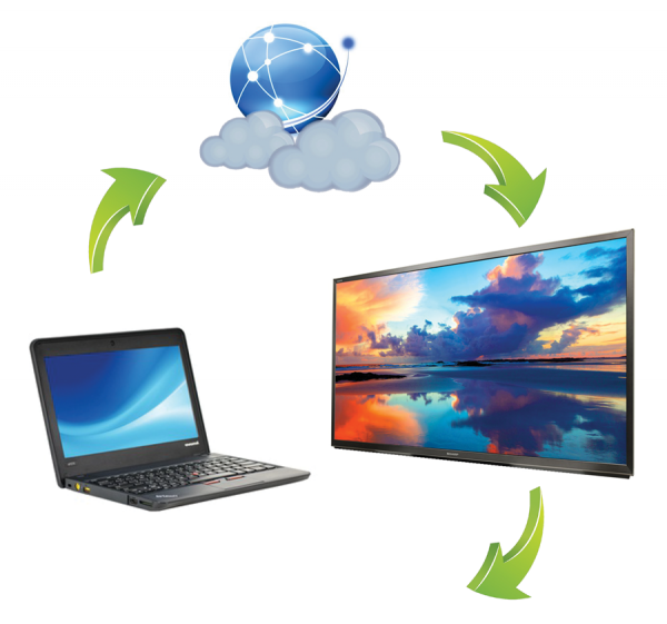 Let's talk a little bit about the Cloud Editor. You will have the ability to make changes to your digital display(s) from anywhere. All you would need is an internet connection. Meyeboard has a built-in online editor which allows you to design your display with a drag and drop interface needing no software or web development experience. If you have software that you like to work with, Meyeboard will accept uploads in several formats (jpg, png, pdf, psd, ai, word, excel,...). You can also write in html if you like.